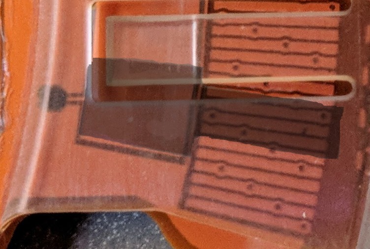| The sort-of T-shaped metalized area (dark grey and somewhat transparent) in its natural habitat (simulated). |